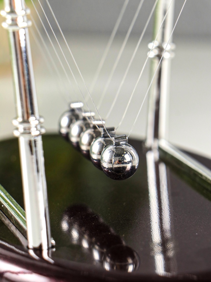 Шары Ньютона — это система, которую изобрел Исаак Ньютон для демонстрации преобразования энергии. Он показал, что при отсутствии противодействующей силы шары могут двигаться вечно, но в данной ситуации это недостижимо. Шары Ньютона еще называют вечным двигателем, они были признаны в конце 20 века, и в основном использовались для релаксации, в психотерапии и для подсчета времени.