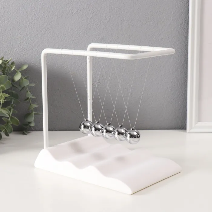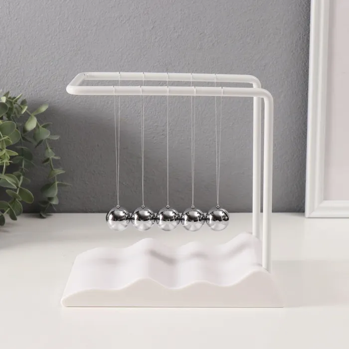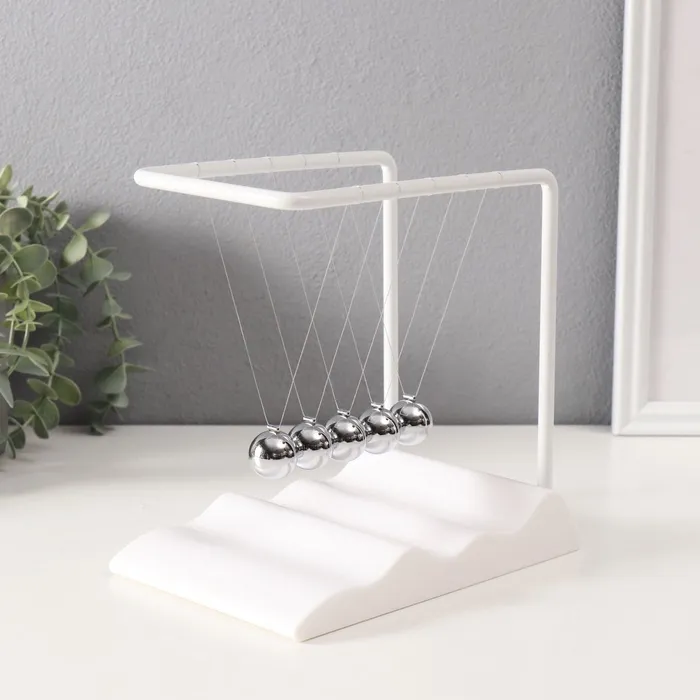 Маятник настольный антистресс «Шары Ньютона. Колыбель техно. Водопад», пластик, белый, 12.4×18.8×19.6 см — Характеристики