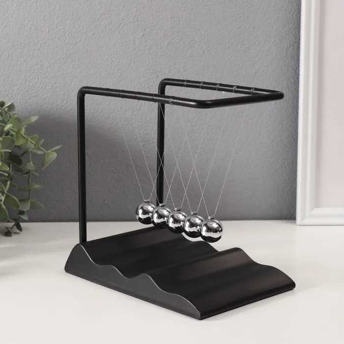 Маятник настольный антистресс «Шары Ньютона. Колыбель техно. Водопад», пластик, чёрный, 12.4×18.8×19.6 см — Характеристики