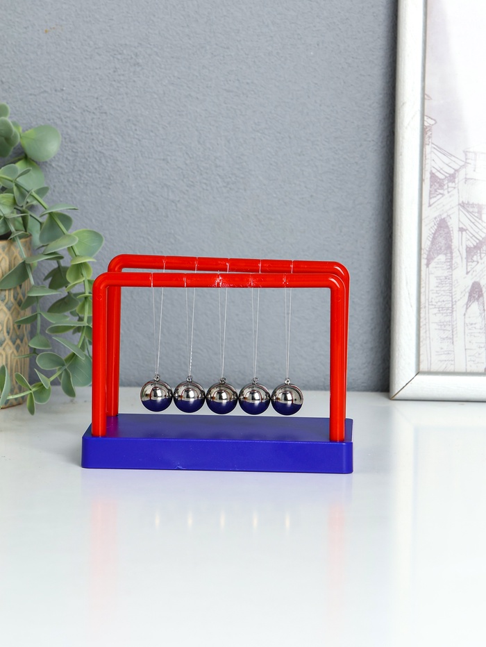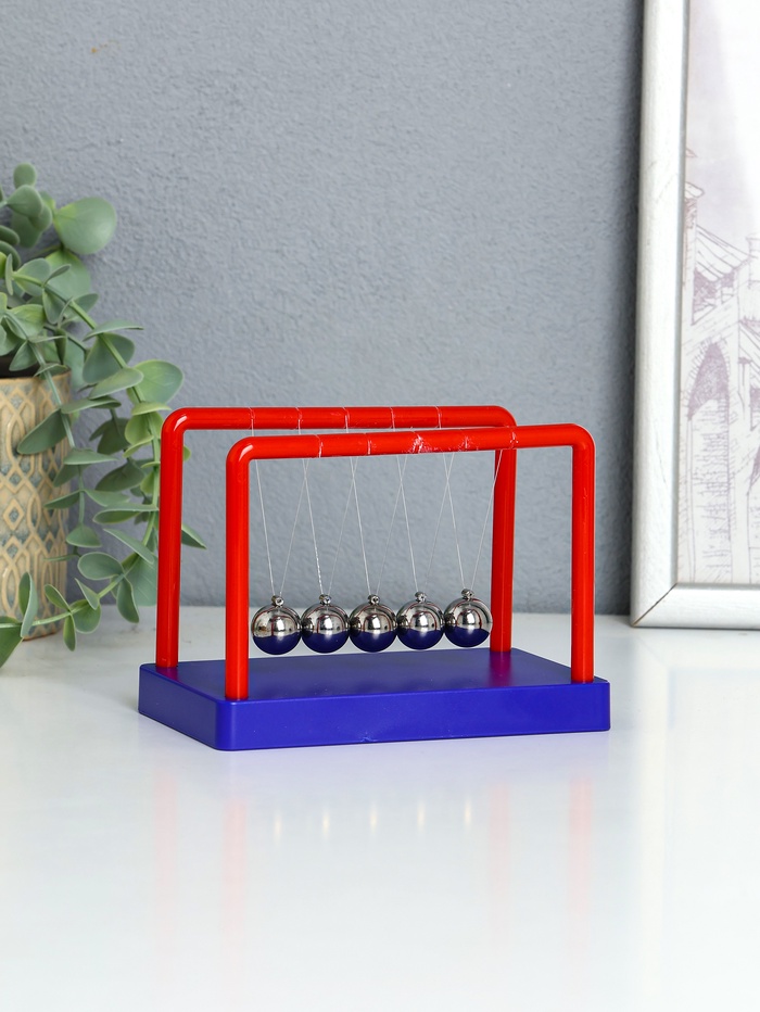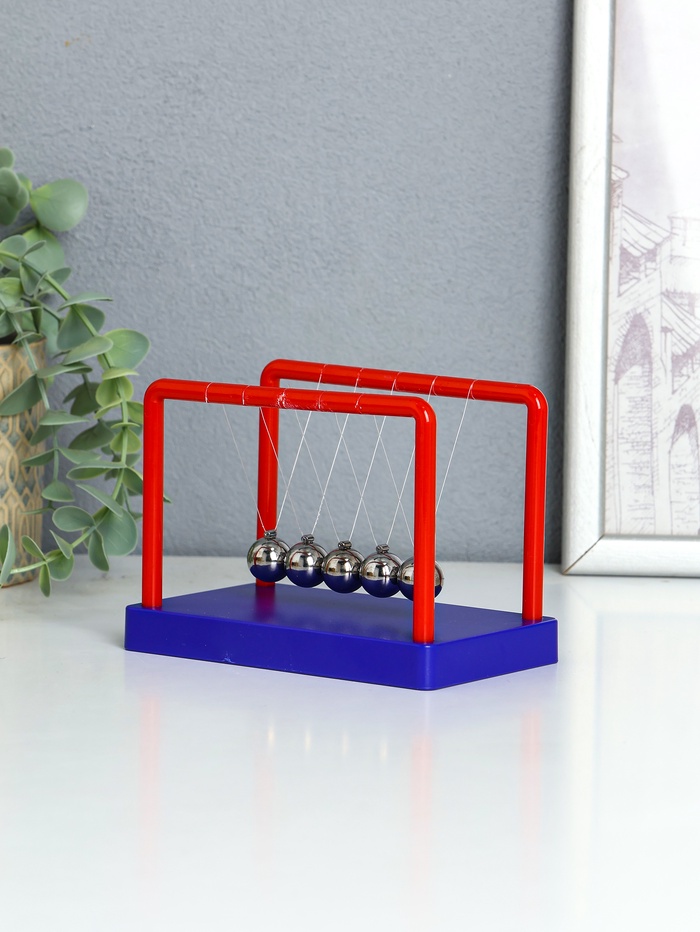Принцип действия основан на сохранении энергии. Удар первого шара передается по цепочке через неподвижные центральные шары последнему, который отлетает, а затем возвращается, запуская цикл заново. Наблюдение за этим непрерывным процессом создает медитативный эффект, отвлекая от тревожных мыслей. Это не просто сувенир, а функциональный антистресс-гаджет для тактильного и визуального отдыха.