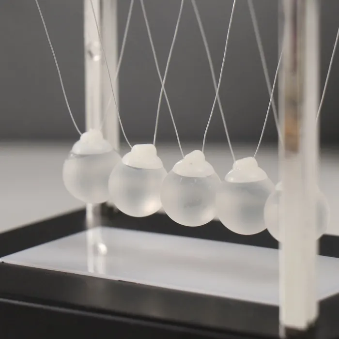 Шары Ньютона сегодня пользуется огромной популярностью у наших клиентов. Система состоит из подставки и пяти металлических шариков, которые подвешены на леске. Для активации маятника вам необходимо отвести один шарик в сторону и отпустить его. Затем наблюдайте, как шарики с противоположной стороны начинают двигаться в зеркальном отображении с той же скоростью. Через определенное время шарики останавливаются. Продолжительность движения зависит от размера и веса шариков: чем тяжелее и больше шарики, тем дольше процесс, и наоборот.