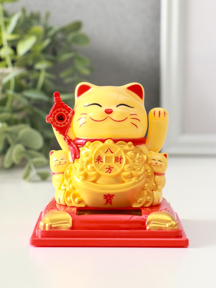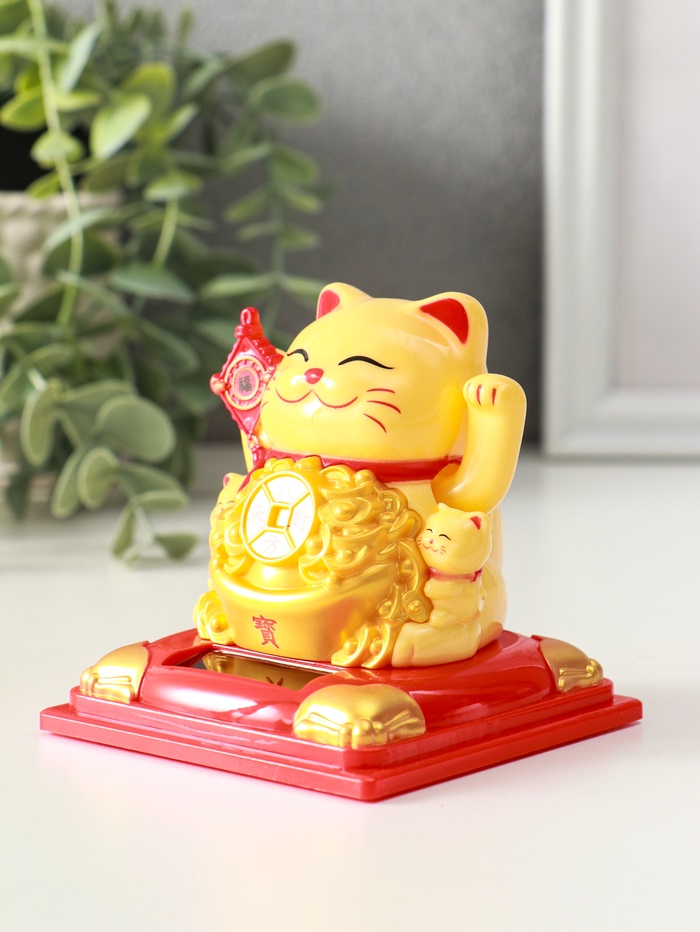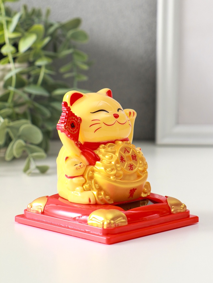 Маятник настольный антистресс «Жёлтый Манэки-нэко с котятами и золотом», 8×8×8.2 см — Характеристики