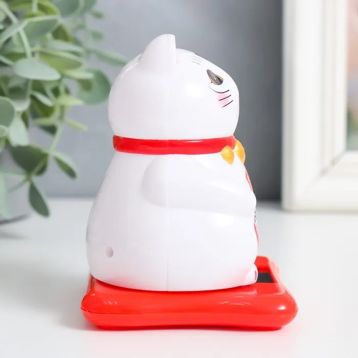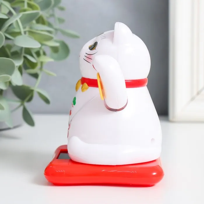 Маятник пластик от солн. батареи "Кот манэки-нэко, ошейник с бубенцами" белый 9,5х10х9,5 см — Характеристики