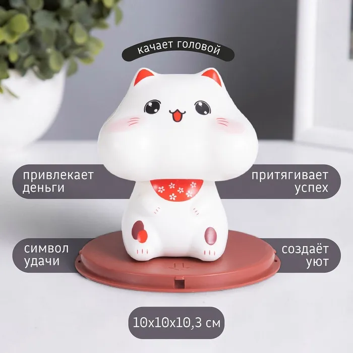 Маятник пластик от солнечной батареи "Кот Манэки-нэко с пухлыми щёчками" 10х10х10,3 см — Характеристики