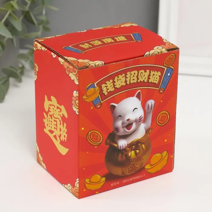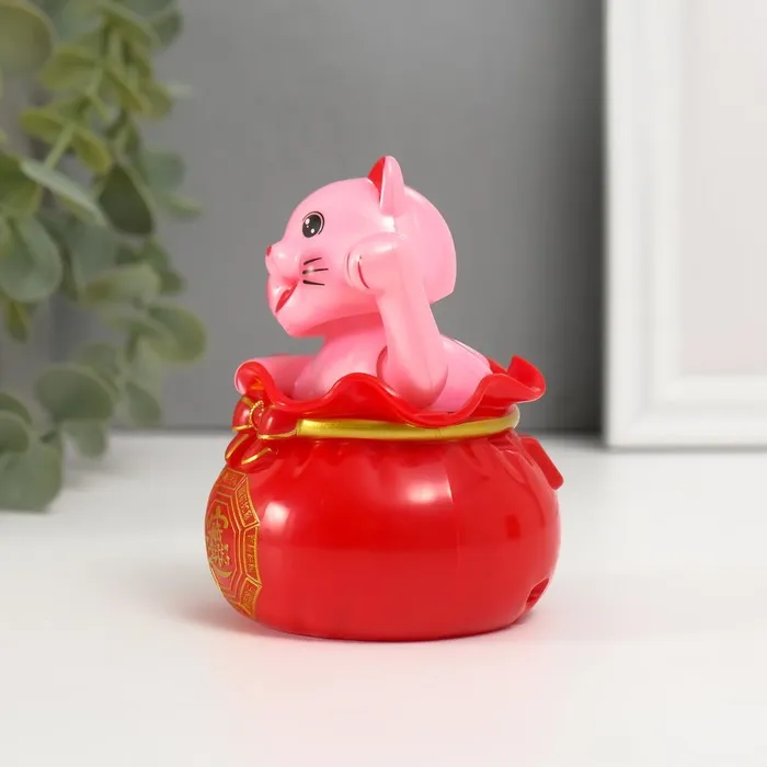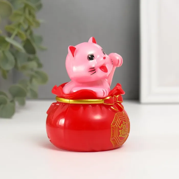 Маятник пластик "Счастливый кот в денежном мешке" белый 7х7х9 см — Характеристики