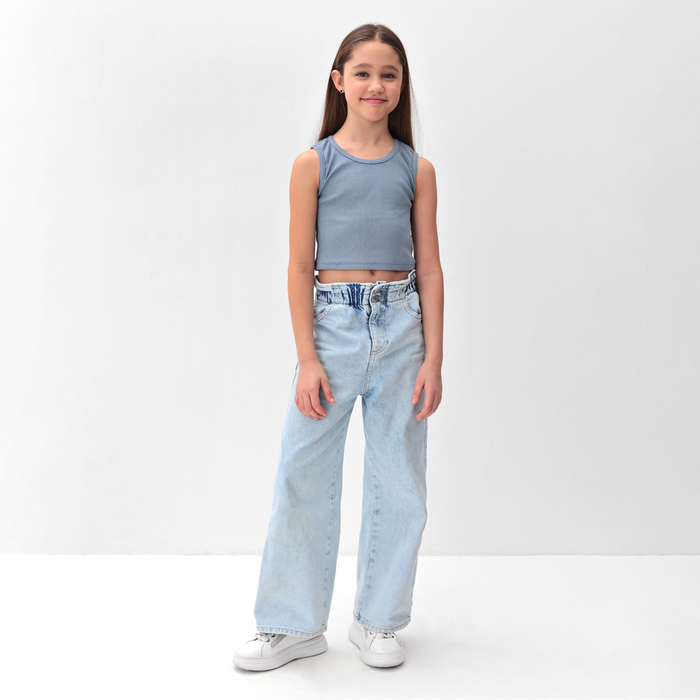 Майка-топ для девочки MINAKU: Basic Line KIDS, серо-голубая, рост 152 см