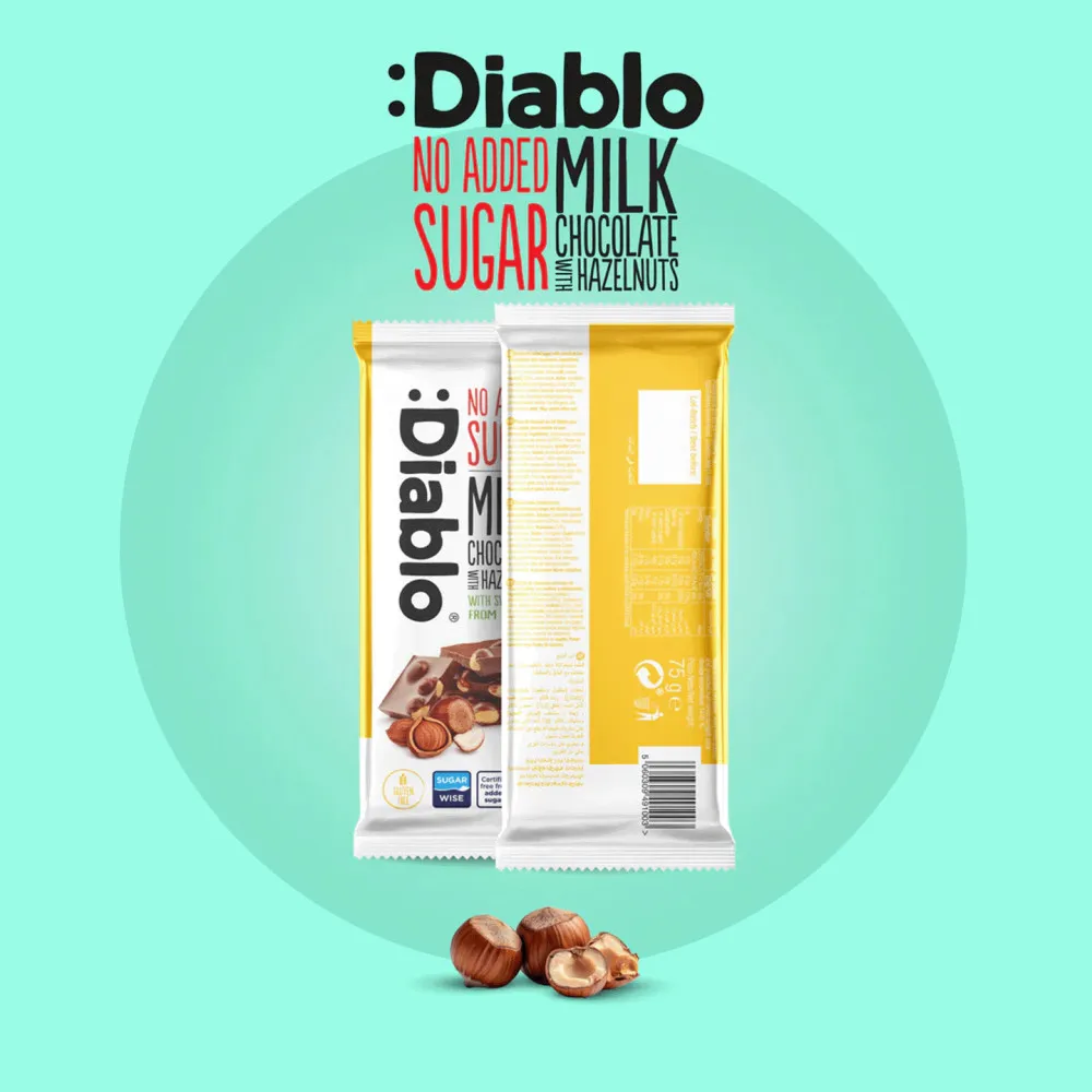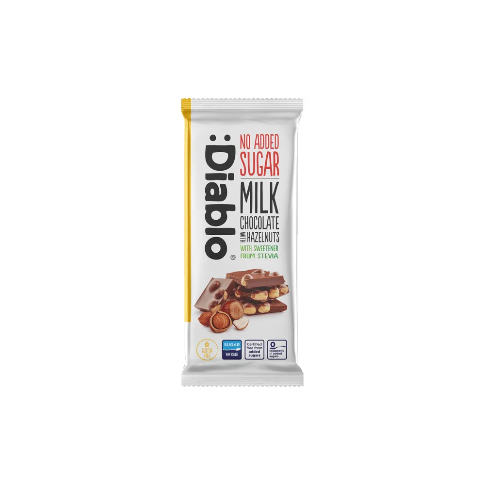 Молочный шоколад с фундуком Diablo (без добавления сахара, подслащенный стевией), 75 г