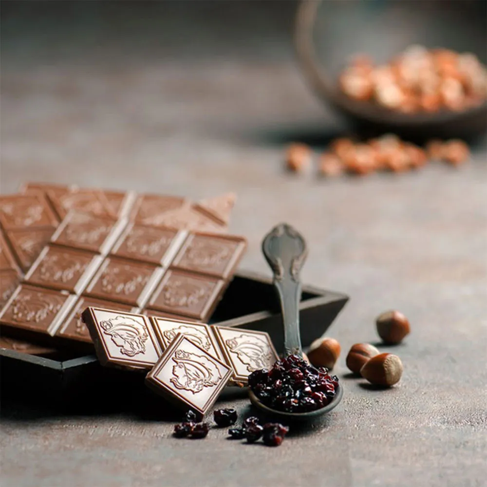 Известные греческие кондитеры решили сделать молочный шоколад – самый популярный вид шоколада в мире – еще вкуснее, добавив в него лесные орехи и изюм. Истинные любители шоколада наверняка оценят это сочетание в ручной плитке.