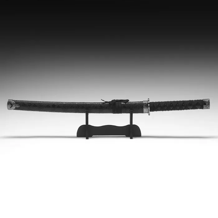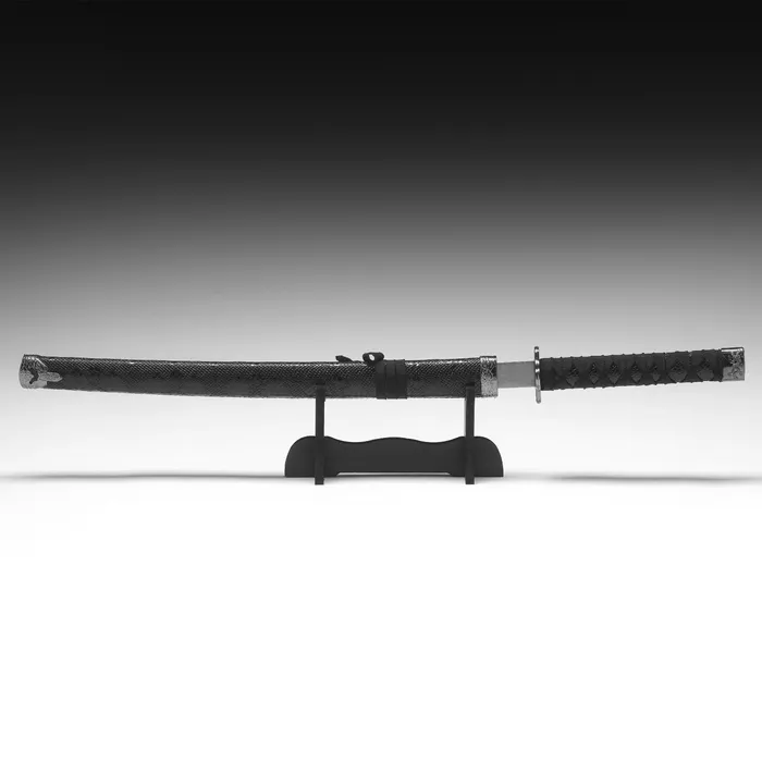 Откройте для себя уникальный сувенир, который станет настоящим произведением искусства в вашем интерьере. Эта катана с черными ножнами под змеиную кожу длиной 70 см привносит в ваш дом атмосферу восточной культуры и утонченности. Каждый элемент этого изделия продуман до мелочей, что делает его не только красивым, но и символичным.