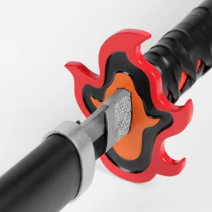 Погрузитесь в атмосферу восточной культуры с этой впечатляющей сувенирной катаной, которая станет настоящим произведением искусства в вашем доме. Элегантный черный цвет и огненная гарда придают ей уникальный и запоминающийся вид, который привлечет внимание гостей и станет предметом восхищения.