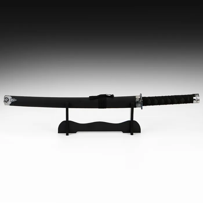 Макет оружия «Сувенирная катана на подставке», чёрные ножны под змеиную кожу, 70 см, клинок 31 см — Характеристики