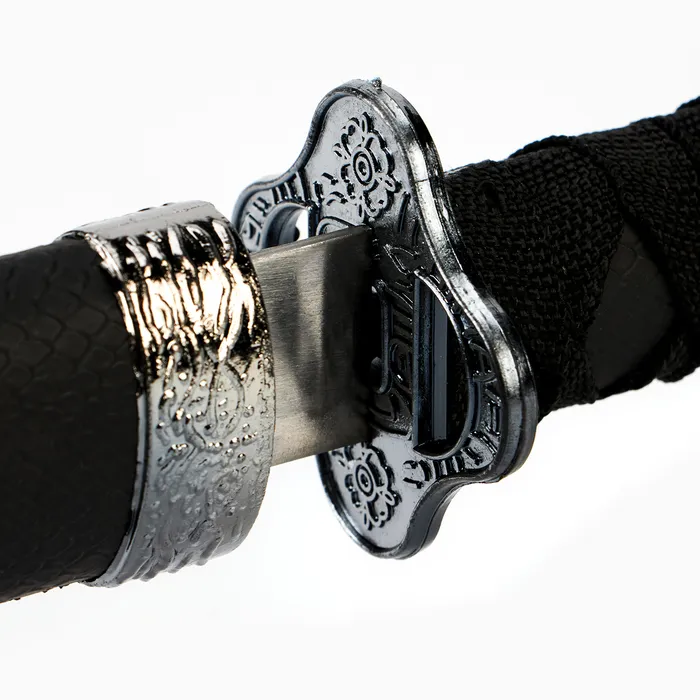 Погрузитесь в атмосферу восточной культуры с изысканным настенным декором, который станет не только украшением вашего интерьера, но и истинным произведением искусства. Эта сувенирная катана на подставке с черными ножнами, выполненными под змеиную кожу, идеально впишется в любой стиль и добавит нотку загадочности и элегантности в ваше пространство.