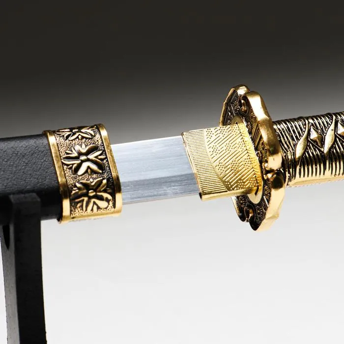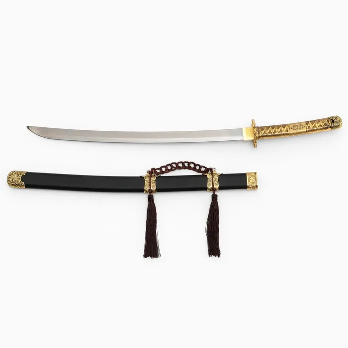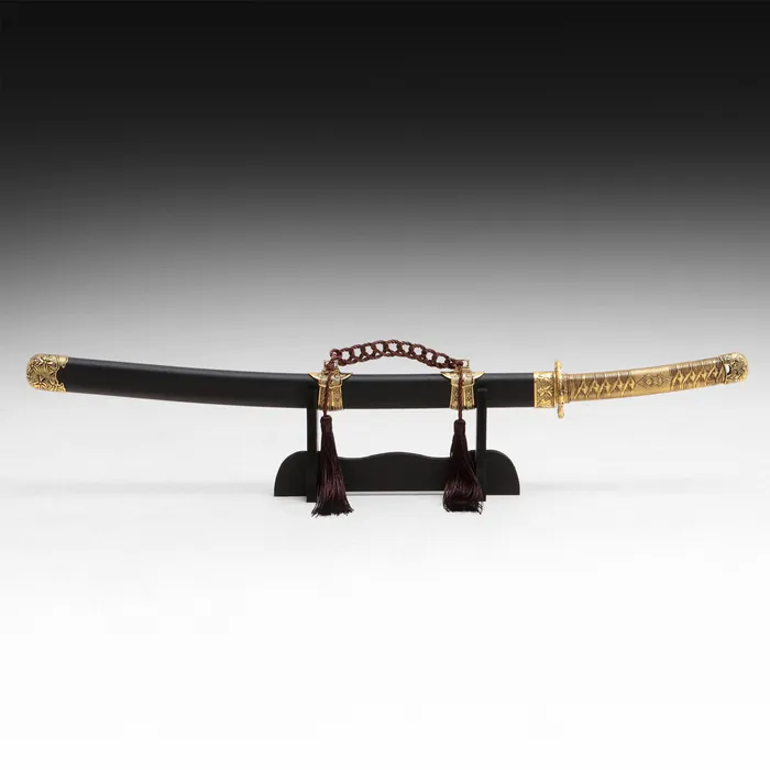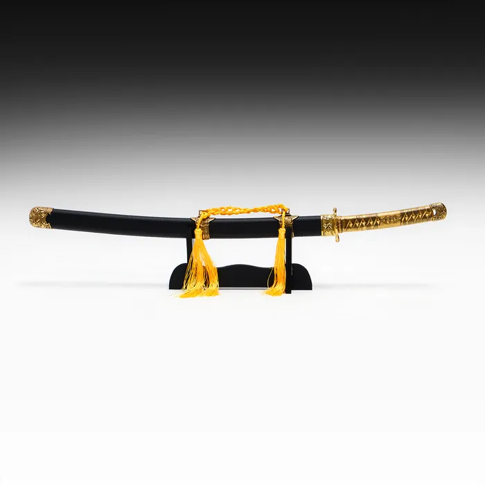 Погрузитесь в мир восточной эстетики с уникальным аксессуаром, который станет настоящим украшением вашего интерьера — сувенирной катаной на подставке. Эта изысканная модель, с длиной лезвия 44 см и бронзовой отделкой, не только привлекает внимание, но и создает атмосферу утонченности и гармонии в вашем пространстве.