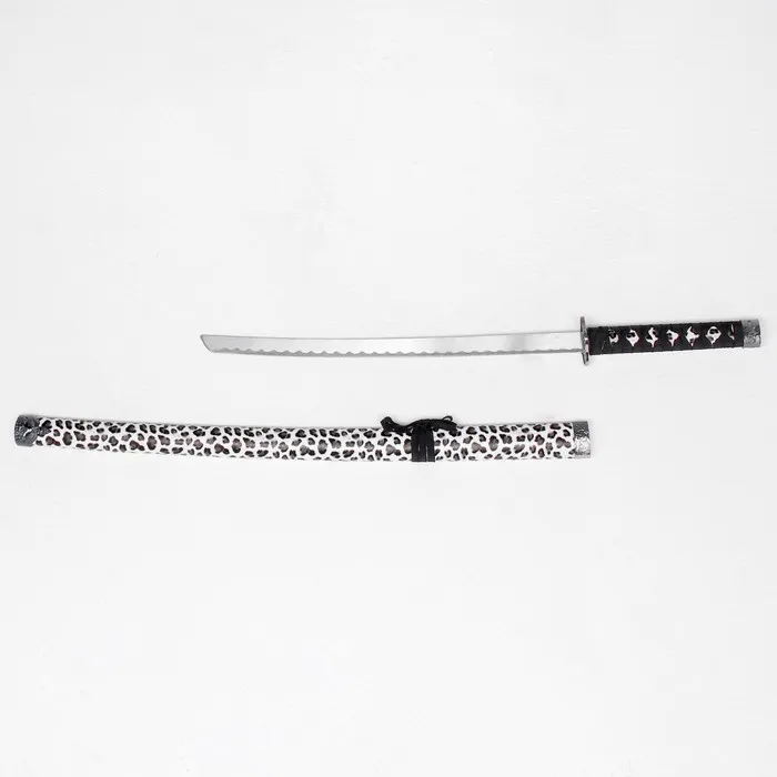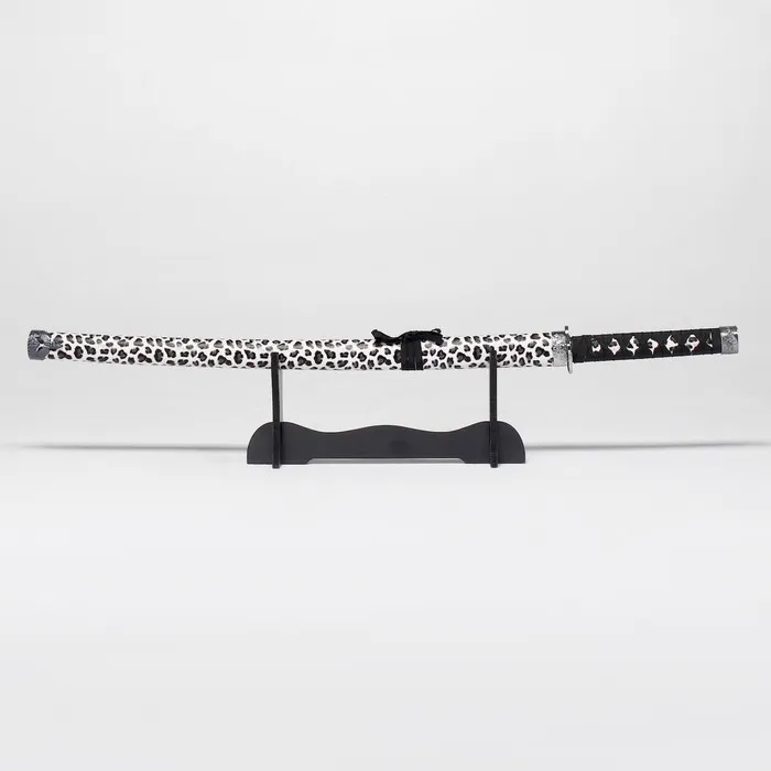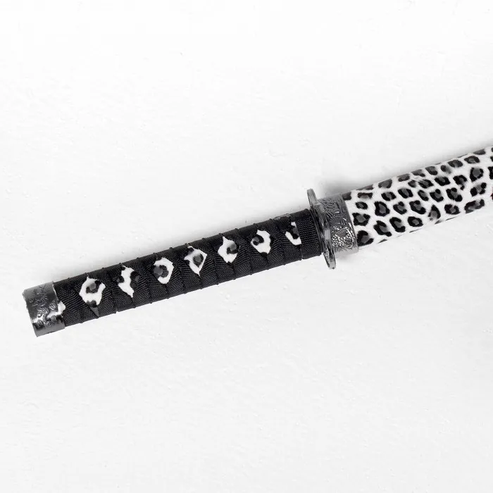 Эта впечатляющая миниатюра катаны с ножнами в леопардовом дизайне станет ярким акцентом в вашем интерьере. С длиной 89 см, она не только привлекает внимание, но и создает атмосферу восточной культуры и стиля. Идеально подходит для коллекционеров и любителей уникальных предметов декора.