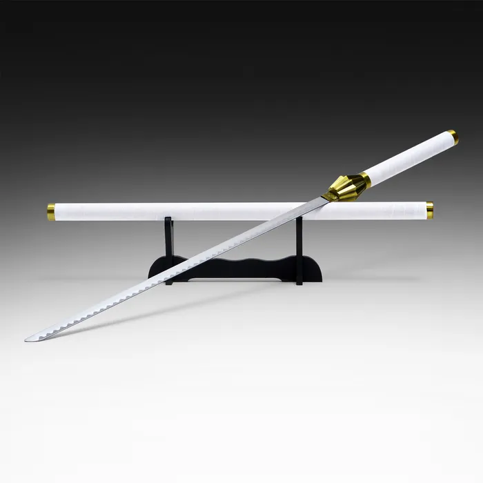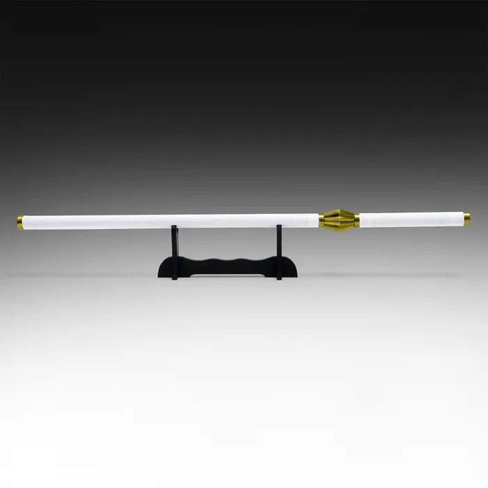 Эта изысканная катана на подставке с белоснежным покрытием и золотыми акцентами станет настоящим произведением искусства в вашем интерьере. С длиной 100 см и клинком, выполненным из металла, она сочетает в себе элегантность и прочность, что делает её идеальным элементом для декора и коллекционирования.