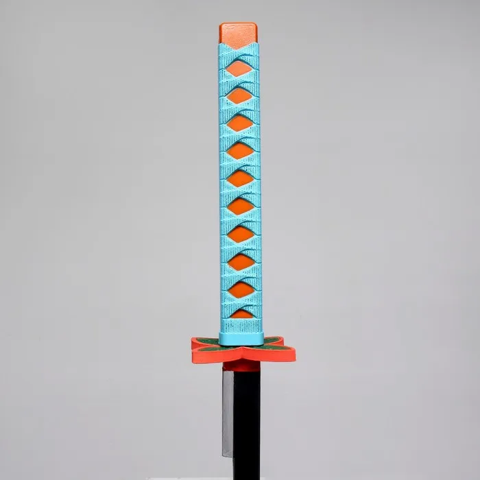 - Стильный дизайн: чёрное лезвие в сочетании с голубой рукоятью придает катане изысканный вид, который станет центром внимания на любом мероприятии.