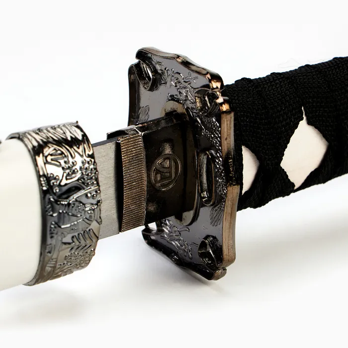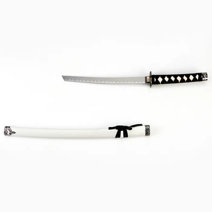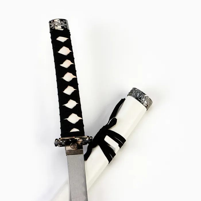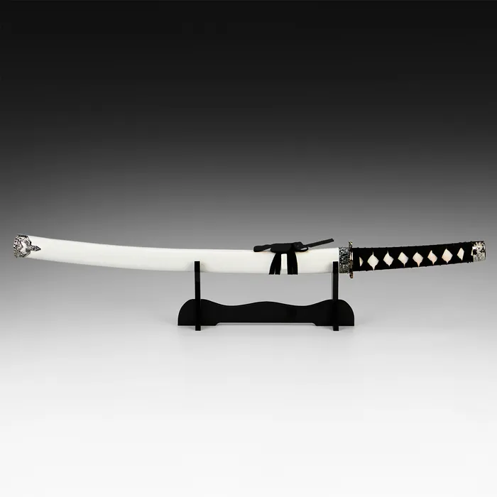 - Элегантный дизайн: белый цвет ножен создает эффектный контраст с металлическим лезвием, делая катану ярким акцентом в любом интерьере.