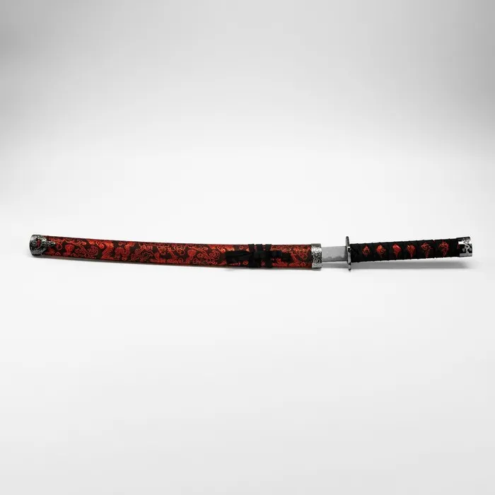 Откройте для себя удивительный мир восточной эстетики с этим великолепным сувениром, который станет настоящим украшением вашего интерьера. Катана с красным цветочным узором на ножнах длиной 70 см — это не просто предмет, а символ силы и красоты, который придаст вашему пространству уникальный шарм и атмосферу.