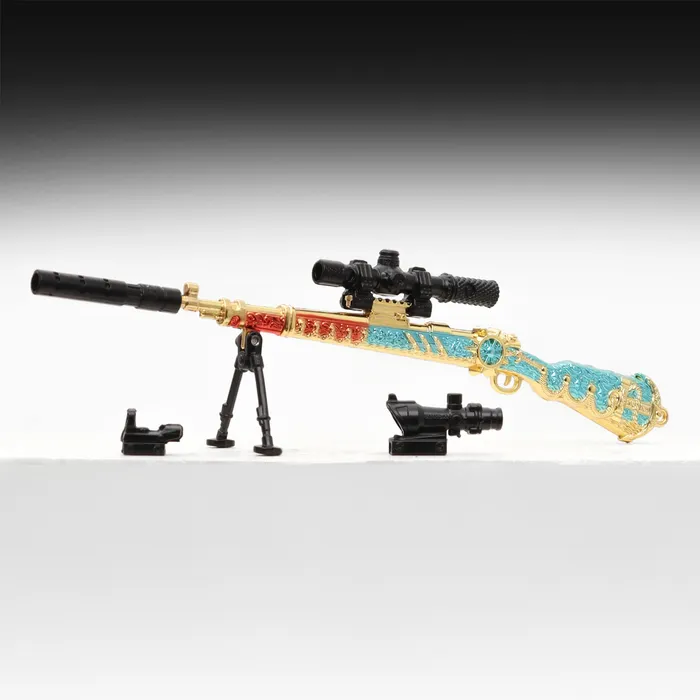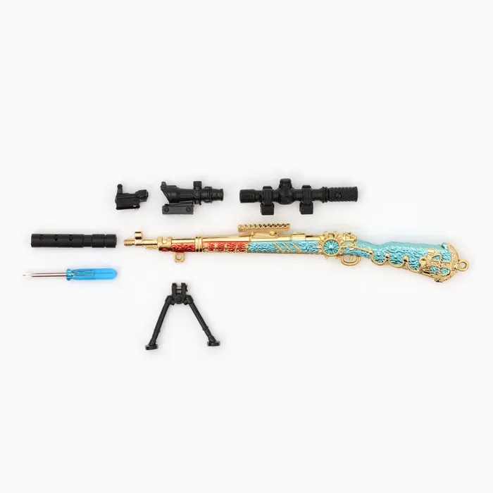 Яркий и оригинальный аксессуар — это не просто макет, а стильный элемент декора, который добавит уникальности вашему интерьеру. Сувенирная снайперская винтовка длиной 26 см, выполненная в разноцветных и золотистых тонах, станет отличным подарком для коллекционеров и любителей военной тематики.