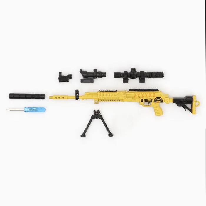 Представляем вашему вниманию яркий и необычный аксессуар, который обязательно привлечет внимание — сувенирная винтовка. С длиной 26 см и выразительным желтым цветом, этот макет, выполненный из качественного пластика, станет настоящей находкой для любителей оригинальных предметов.