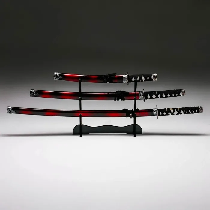 - Стильная подставка: Каждая катана удобно размещается на подставке, что позволяет выставить их на показ и создать эффектный декор.