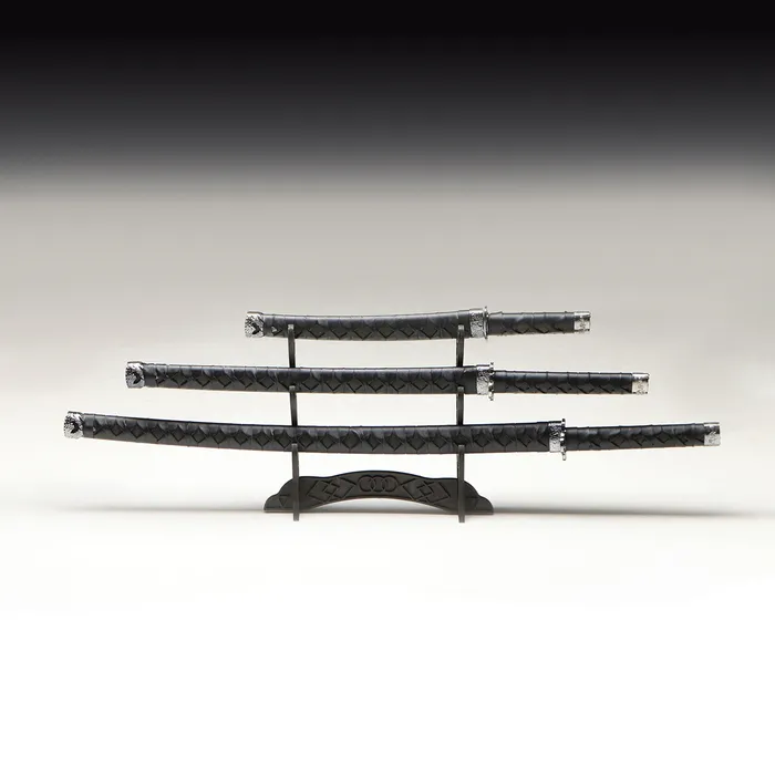 - Три великолепных меча: В набор входят три катаны длиной 47 см, 70 см и 89 см, что позволяет создать гармоничное оформление и разнообразить декор вашего пространства.