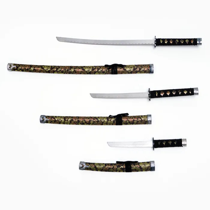 - Элегантный дизайн: Каждая катана длиной 21 см, 27 см и 46 см имеет уникальные детали, которые придают ей особую атмосферу восточного искусства.