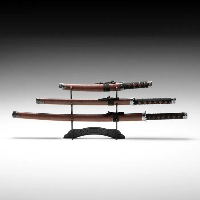 Макет оружия «Сувенирные катаны на подставке 3в1. Коричневая змея», подарочный набор, ножны кожзам, 46 см; 70 см; 89 см — Характеристики