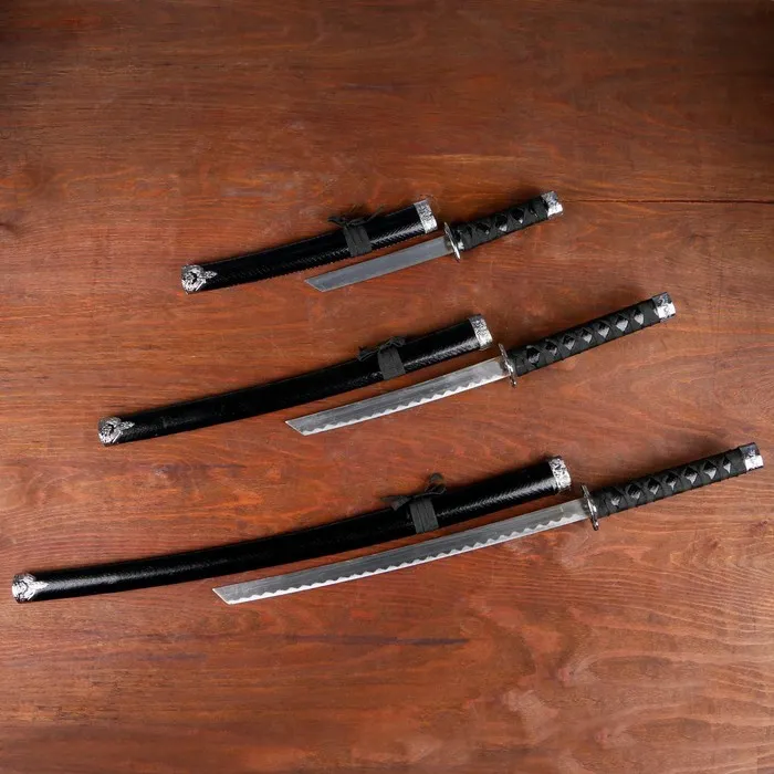 Макет оружия «Сувенирные катаны на подставке 3в1. Рептилия», подарочный набор, ножны кожзам, 47 см; 70 см; 89 см — Характеристики