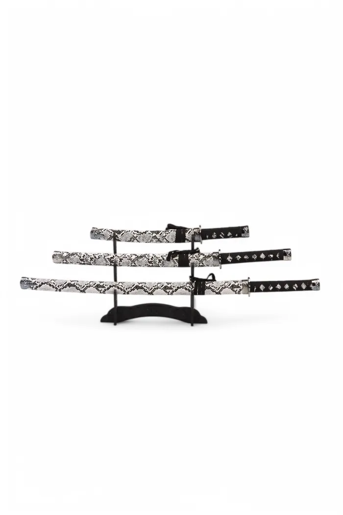 Макет оружия «Сувенирные катаны на подставке 3в1. Серый змей», подарочный набор, ножны кожзам, 47 см; 70 см; 89 см — Характеристики
