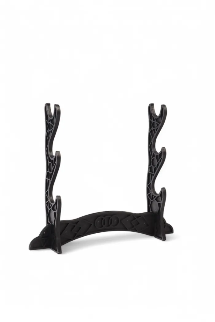 - Удобство размещения: подставка в комплекте позволяет легко демонстрировать катаны, не занимая много места.
