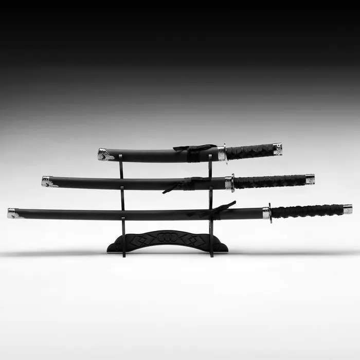 Макет оружия «Сувенирные катаны на подставке 3в1. Строгость», подарочный набор, ножны кожзам, матовая, чёрная, 47 см; 70 см; 89 см — Характеристики