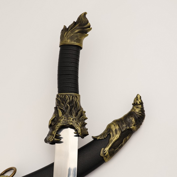 Откройте для себя уникальный аксессуар, который станет ярким акцентом в вашей коллекции — макет ятагана. С длиной 35 см и клинком в 22 см, этот сувенир не только впечатляет своим внешним видом, но и передает атмосферу древних традиций и мастерства.
