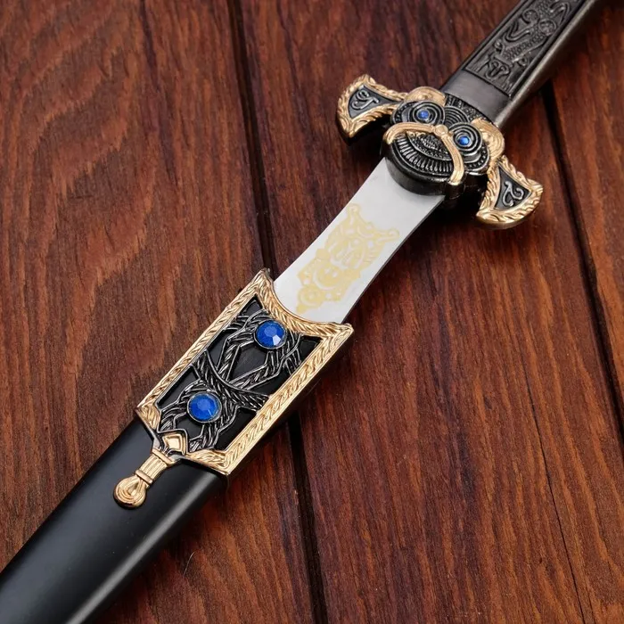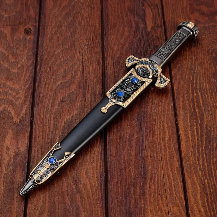 Макет оружия «Сувенирный меч. Жало», лезвие с изгибом на ножнах витые узоры, чёрный с серебром, 28 см