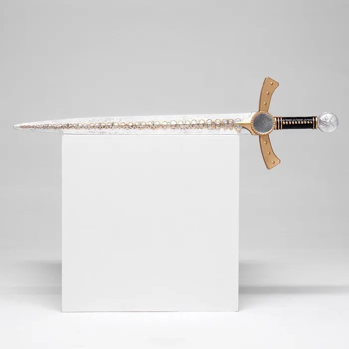 - Эстетическая привлекательность: золотистый цвет и оригинальные детали делают меч настоящим произведением искусства, которое привлекает внимание.