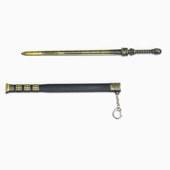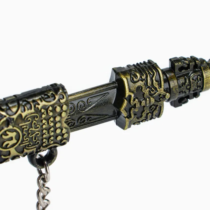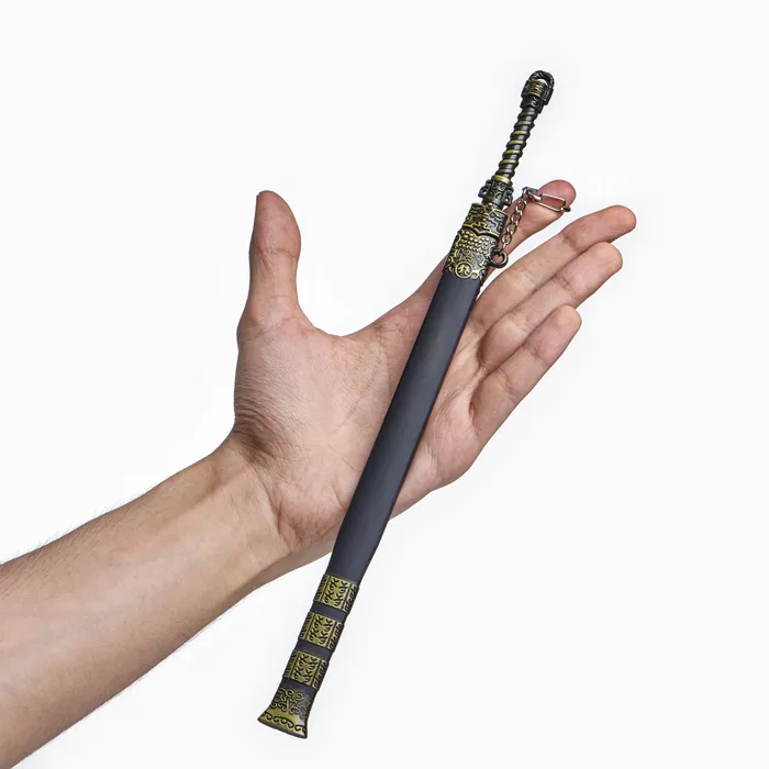 Представляем вашему вниманию стильный и оригинальный аксессуар, который станет не только практичным дополнением к вашему образу, но и настоящим произведением искусства — подвесной брелок в виде меча, выполненный в стиле аниме. С длиной 28 см и элегантным черным цветом, украшенным золотыми акцентами, этот брелок привлечет внимание и станет отличным выражением вашей индивидуальности.