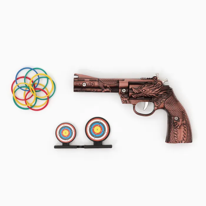 Откройте для себя удивительный аксессуар, который добавит нотку приключения и оригинальности в вашу коллекцию — сувенирный револьвер, резинкострел длиной 15 см. Этот яркий и стильный предмет станет отличным подарком для любителей необычных вещей и станет настоящим украшением любого интерьера.