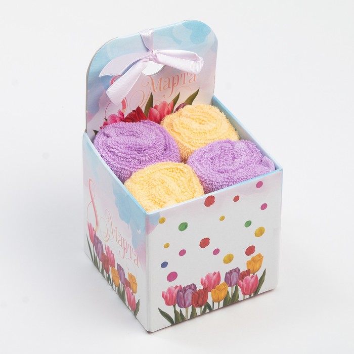 Махровые салфетки «Этель. С 8 Марта», 30×30 см, 4 шт., 100% хлопок, 340 г/м², фиолетовые/жёлтые — Характеристики