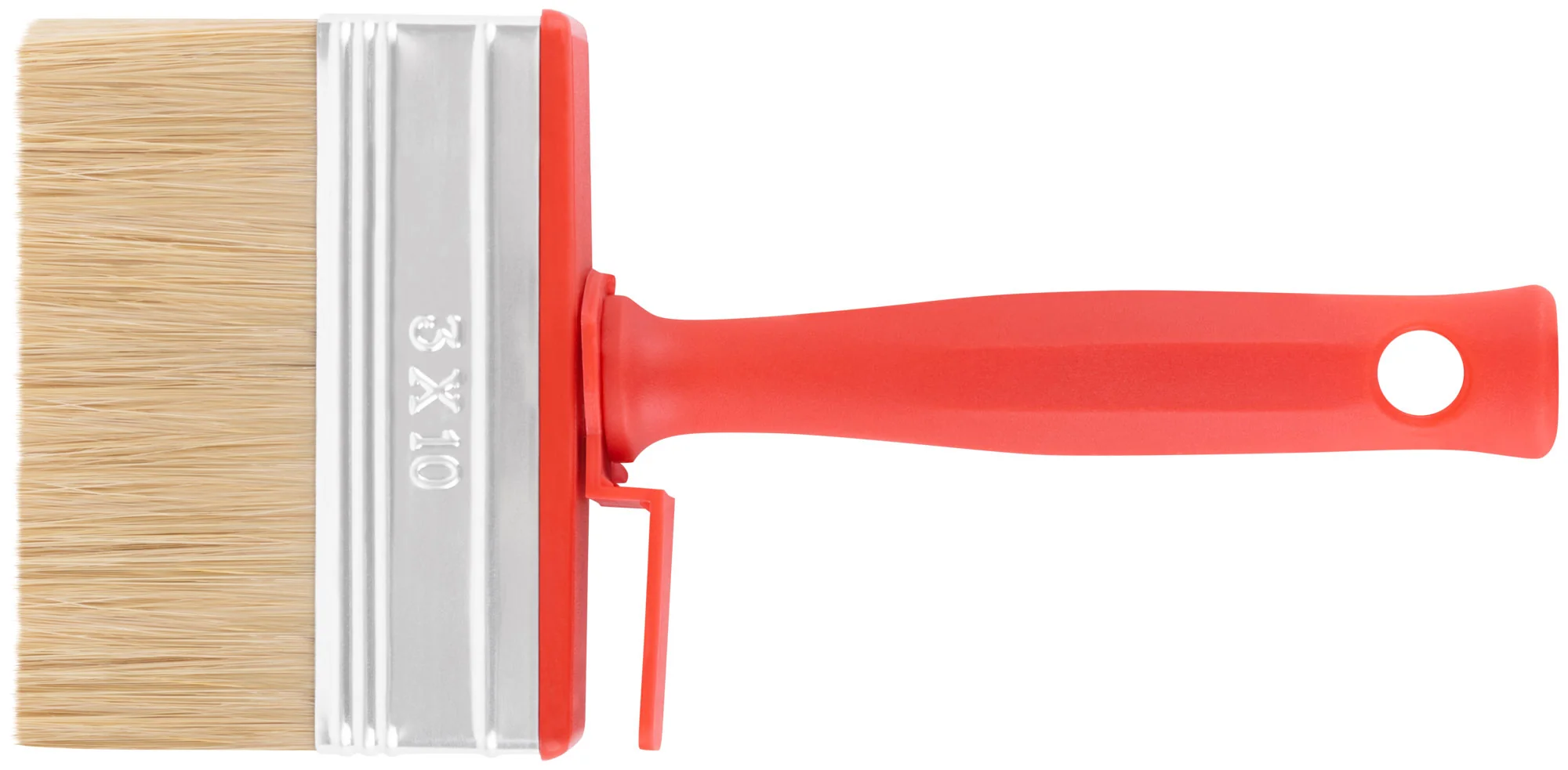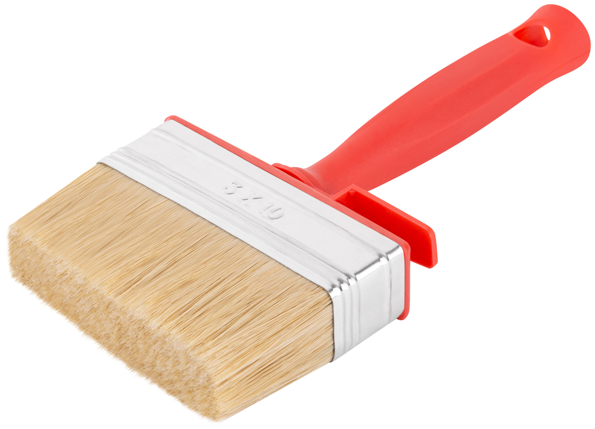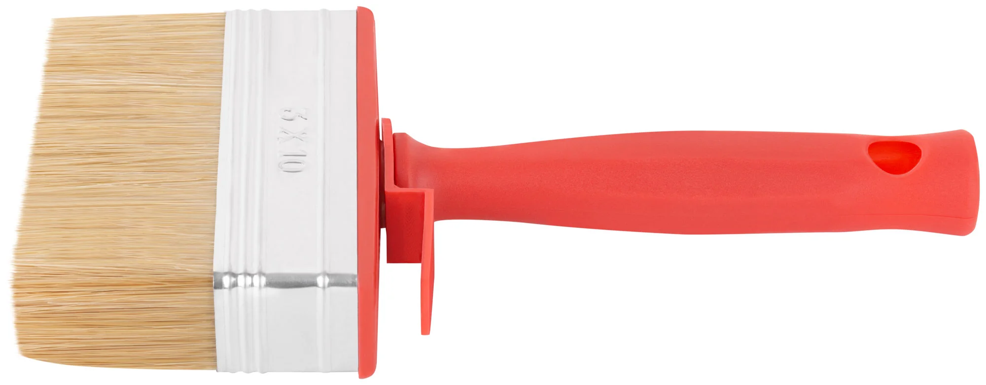 Инструмент изготовлен из смеси 70% синтетической и 30% натуральной щетины, что обеспечивает долговечность и отличные покрасочные свойства. Нержавеющий обжим предотвращает коррозию, а красная пластиковая ручка удобна в использовании.
