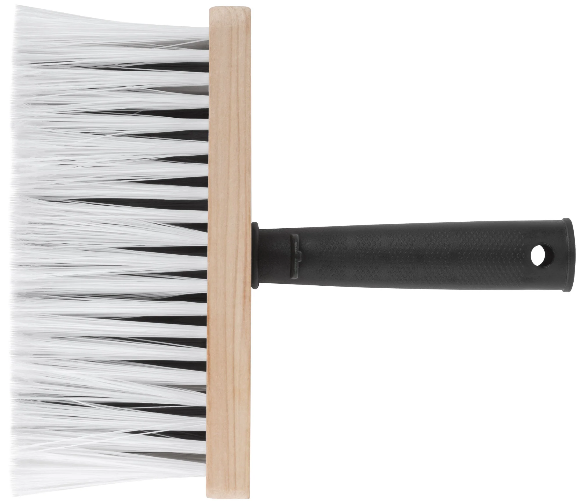 Изделие имеет деревянную основу, что придает ему прочность и долговечность, а пластиковая ручка обеспечивает легкость и удобство в работе. Щетина из ПЭТ-материала устойчива к износу и хорошо удерживает краску, что снижает её расход.