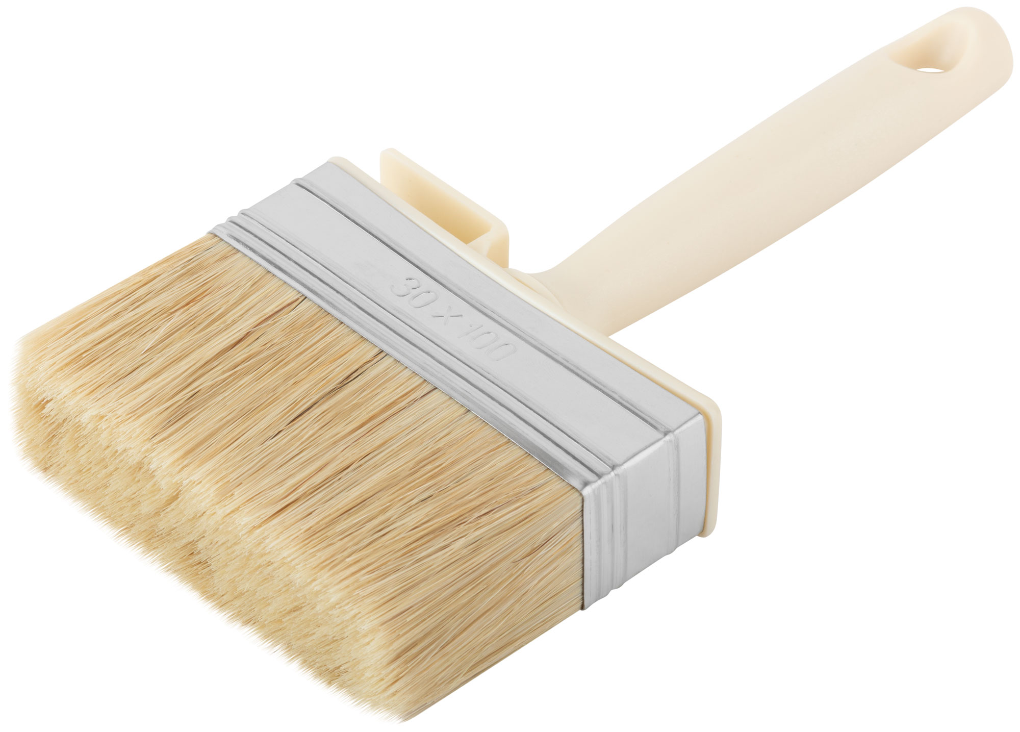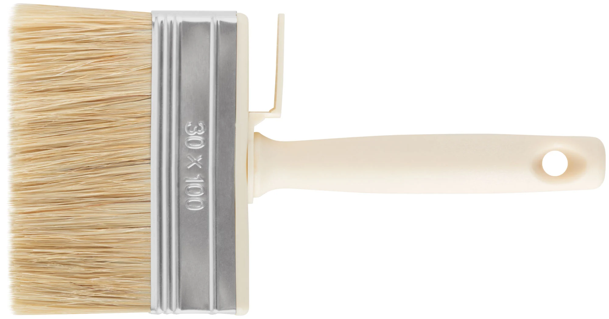 Макловица оснащена натуральной светлой щетиной, которая обеспечивает качественное распределение краски. Пластиковый корпус изделия надежен и легок, что делает работу комфортной даже при длительном использовании. Типоразмер 30 х 100 мм идеально подходит для большинства стандартных задач.