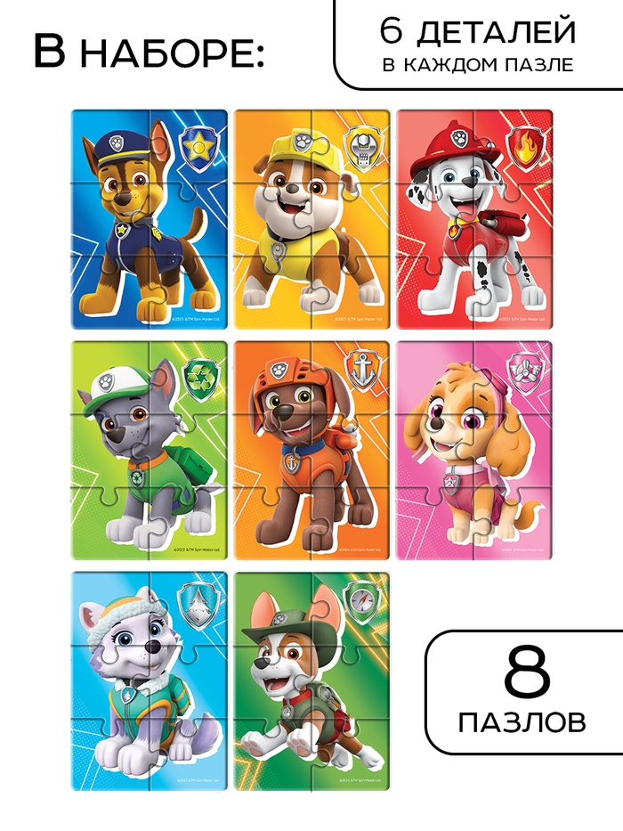 Макси - пазлы 8в1 «Приключения щенков», 8 пазлов по 6 деталей — Характеристики