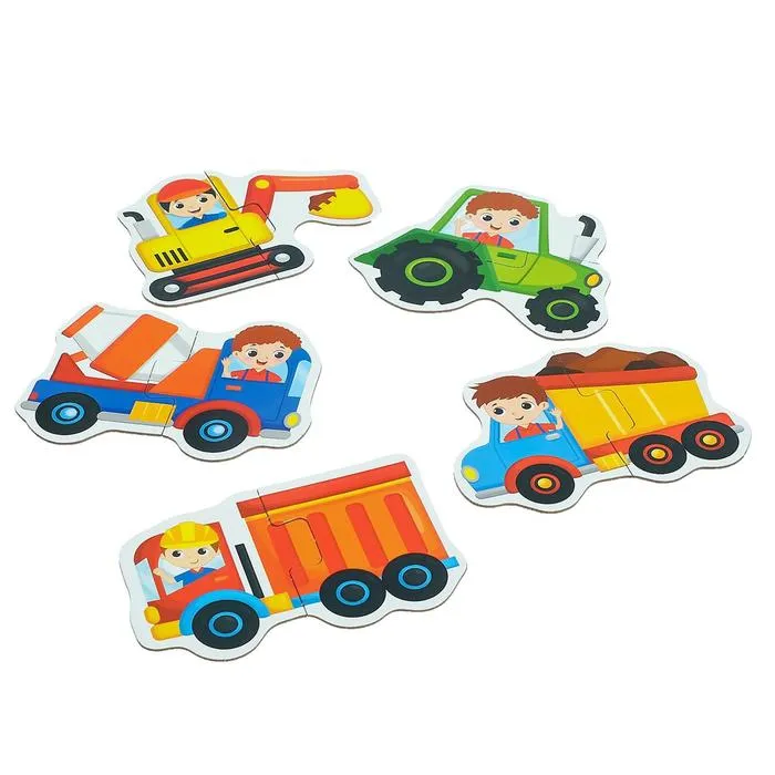 Макси пазлы «Машины на стройке» — это 10 деталей, из которых ребёнок соберёт 5 разных пазлов и познакомится с машинами, которые участвуют при строительстве домов. Макси пазлы помогут развить усидчивость, координацию и мелкую моторику рук, а также научат находить связь между частью и целым.