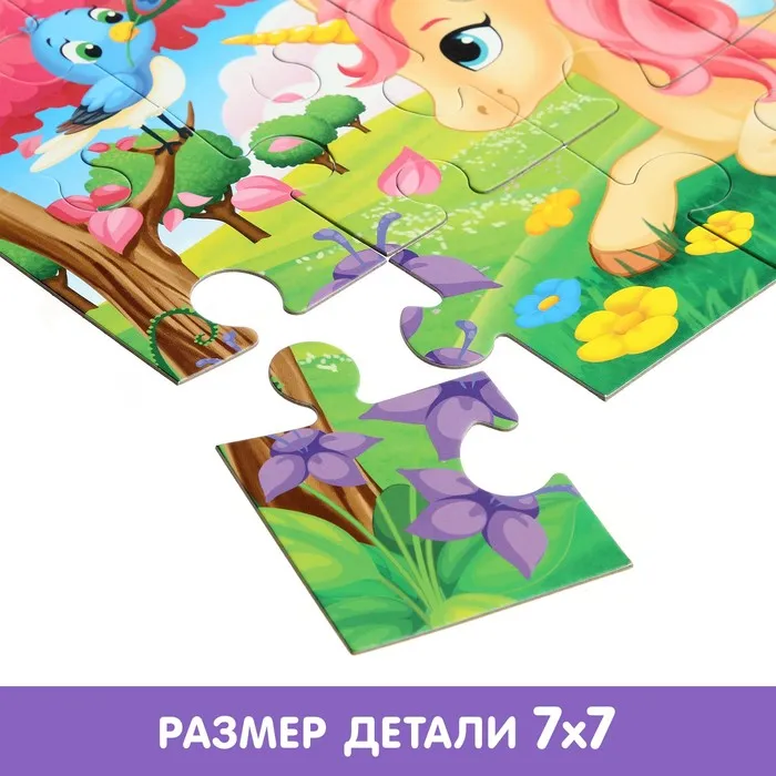 Собрав все 15 крупных деталей, малыш получит красочную картинку размером 22 × 33 см.