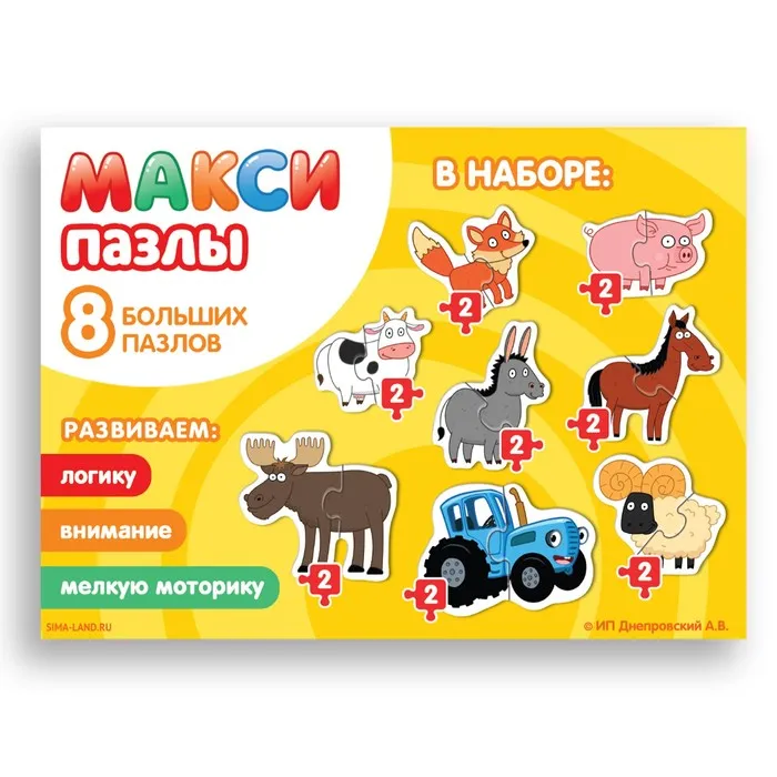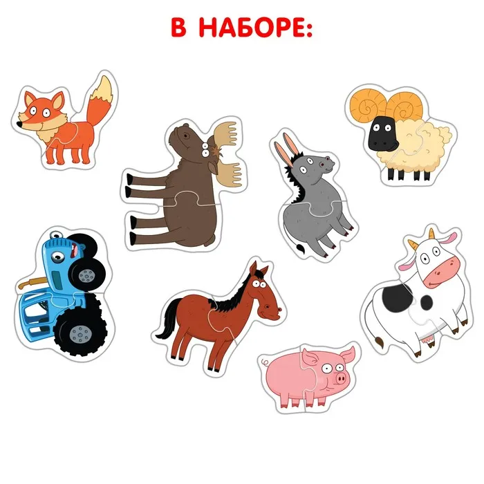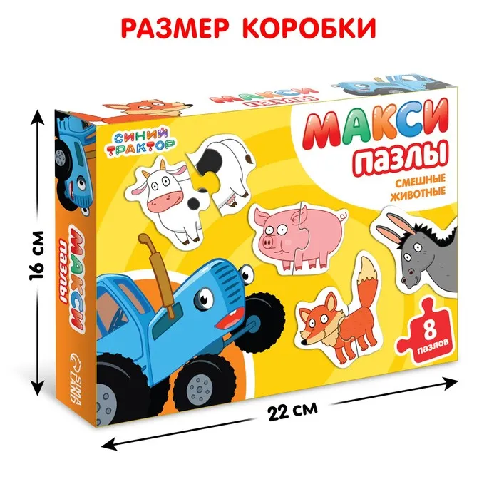 Макси - пазлы «Смешные животные», 8 пазлов, 16 элементов, Синий трактор — Характеристики