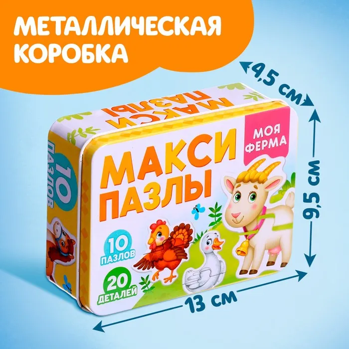 Макси - пазлы в металлической коробке «Моя ферма», 10 пазлов, 20 деталей — Характеристики