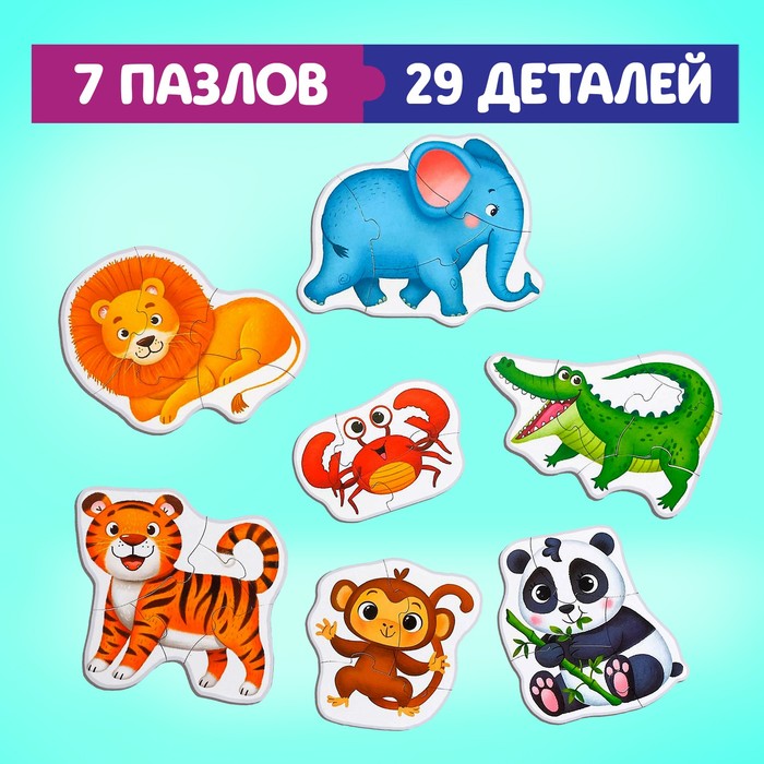 Макси-пазлы «Такие разные зверята» — это 29 деталей, из которых ребёнок соберёт 7 разных пазлов. В процессе малыш познакомится с забавными зверятами и узнает, где они живут. Собирая эти пазлы, ребёнок получит знания об окружающем мире и научится складывать целое изображение из двух частей.