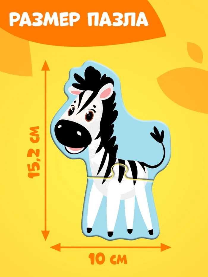 - 10 фигурных пазлов — каждый представляет собой отдельное животное, например, льва или слона.