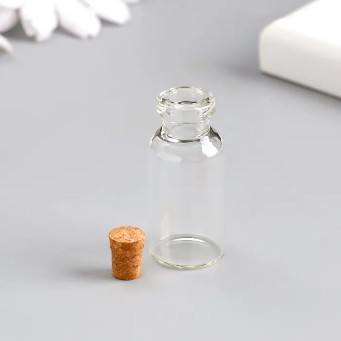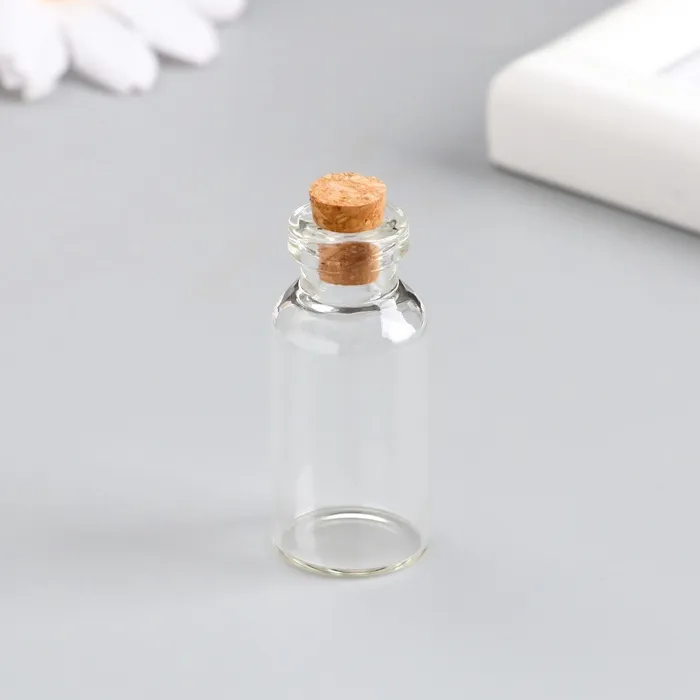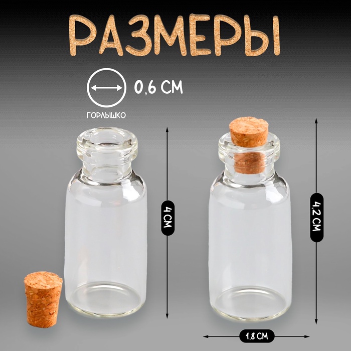 Маленькая стеклянная баночка прозрачная «Бутылочка с пробкой», для творчества и декора, 5 мл, 4×1.8×1.8 см — Характеристики