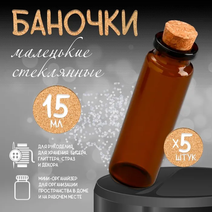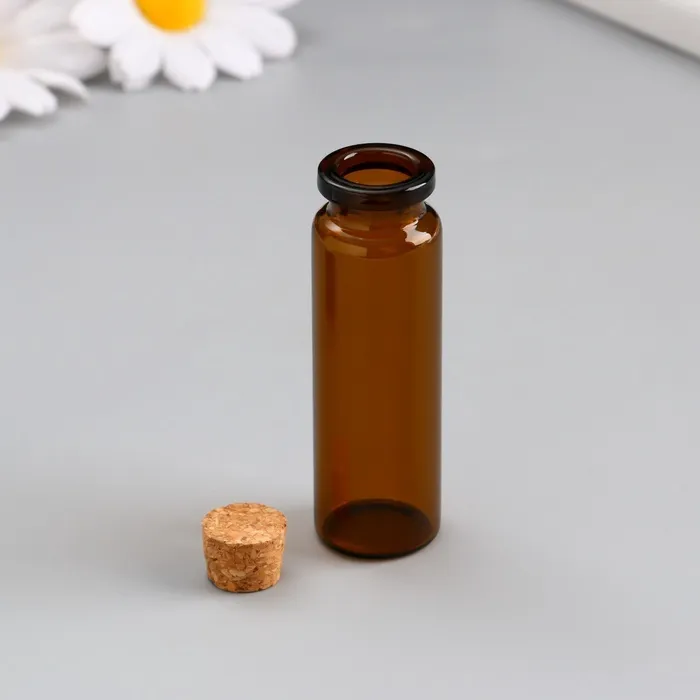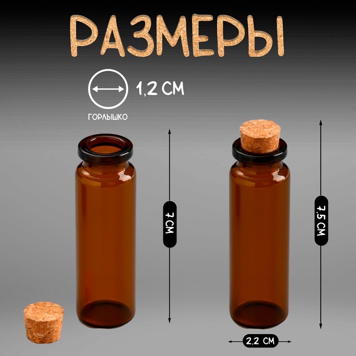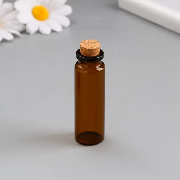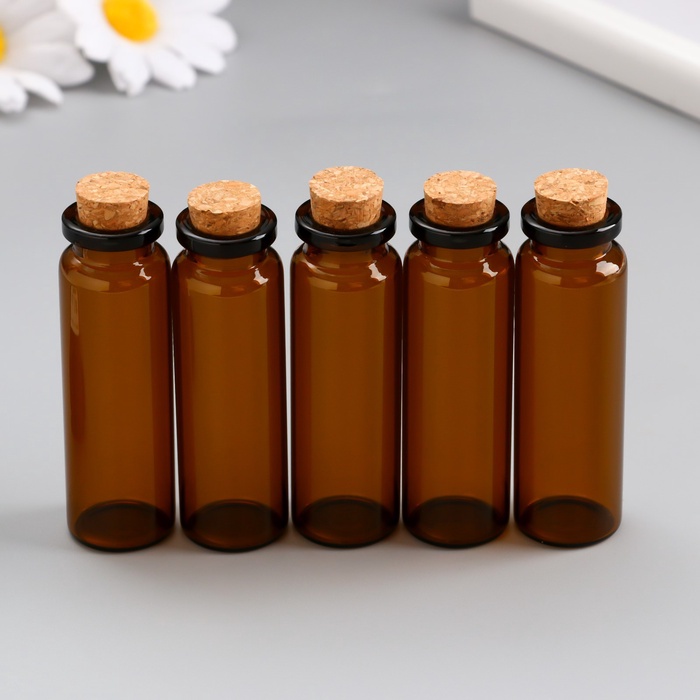 Маленькие стеклянные баночки «Бутылочка с пробкой», набор 5 шт. для творчества и декора, чайный, 15 мл, 7×2.2×2.2 см — Характеристики
